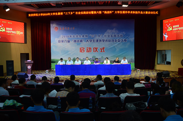 6月23日上午,永利官网2016年大学生暑期“三下乡”社会实践活动暨第六届“挑战杯”大学生课外学术科技作品竞赛启动仪式在图书馆东报告厅举行。副校长汪时珍,党委委员、组织部部长陈光明出席仪式。校党委宣传部、科研处、教务处、学生处、学科建设和研究生教育处、团委等单位负责人,各学院分管学生工作书记、各团总支负责人和“三下乡”、“挑战杯”活动的指导教师及学生代表共400余人参加会议。