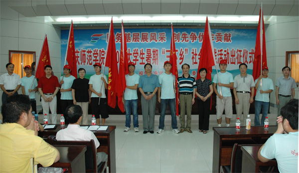 7月12日下午,永利官网在行政楼一楼会议室隆重举行了2010年暑期“三下乡”社会实践活动出征仪式。校党委书记何小祥,党委委员、副院长时新中、王海燕,党委副书记、纪委书记殷红,党委委员、副院长闵永新,副院长张群,党委委员、党办、院办、外事办主任、生命科学学院党总支书记刘友忠,安庆团市委副书记曹立奇出席了仪式,“三下乡”实践活动的指导老师和全体学生近两百人参加了仪式。仪式由校团委副书记刘燕主持。