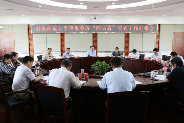 党委书记许继荣代表学校党委汇报了巡视整改工作情况。他指出,省委和省委教育工委关于巡视整改“回头看”工作启动后,学校党委高度重视,及时成立了领导小组,印发了《实施方案》,按照“查漏洞、抓反弹、补短板”的工作要求,认真组织开展“回头看”工作。在巡视整改过程中,学校党委不断深化思想认识,强化责任担当,坚持“两个突出”,抓好“三个结合”,做到“五个注重”,从严从实抓整改,取得了明显成效。他着重从主要做法、存在问题和今后努力方向三个方面汇报了学校巡视整改工作。