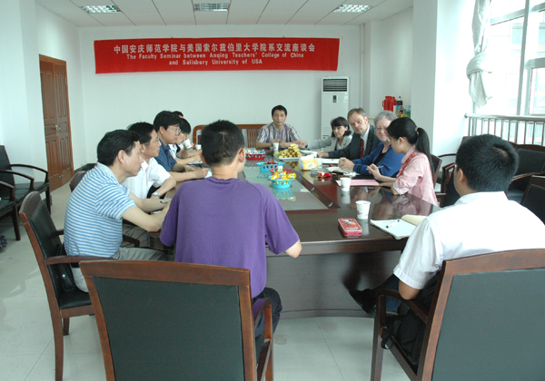 在两个多小时的座谈会上,安庆师范学院人文与社会学院院长李义中教授就课堂教学方式、《中国历史》课程教学设计,文学院季艳老师就《汉语》课程教学内容等问题与美国的专家进行了探讨,双方还研究了实践活动的方式、晚自习的安排、课前文献阅读布置等工作。下学期将赴美学习的教育学院的两名同学则详细询问了索尔兹伯里大学对她们的学习和生活的安排。(文/何骏 图/计裕人)