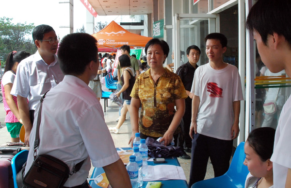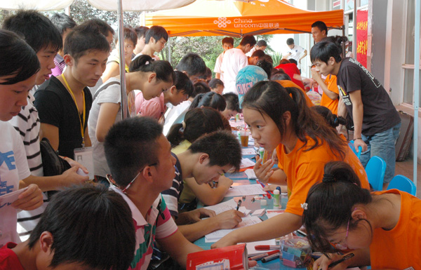 校团委、学生会及各院系还组织青年志愿者主动为新生服务。当经历了一路奔波的新生与家长来到学校后,马上会有志愿者围上去把他们带到接待区,为家长们捧上一杯茶水,为新同学指路、答疑;许多高年级学生加入到志愿者队伍中来,他们奔跑于各个报到地点,热情地帮助新生办理各种手续,为新生搬运行李,给新生讲解各个注意事项及学校的基本情况,来消除新生的陌生感。面对热情的接待和周到的服务,许多新生和家长的脸上洋溢着满意而又欣慰的笑容。