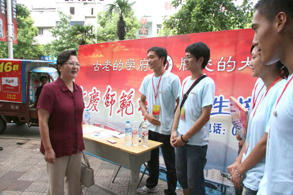 9日上午,党委书记何小祥,党委副书记、院长朱士群,副院长时新中、王海燕等校领导,在办公室等相关部门负责同志的陪同下,亲临龙山校区和菱湖校区的新生报到点,查看了新生报到情况,看望了正在现场工作的院系的老师和同学们。党委副书记、纪委书记殷红在办公室有关同志的陪同下,亲临学校设在火车站、汽车站等地的接待点,看望了在那里服务的学生志愿者。