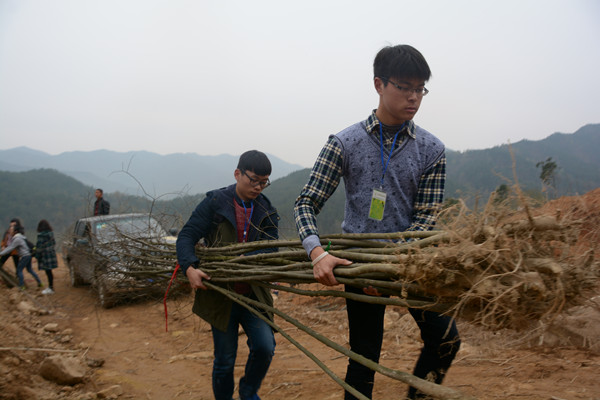 半天内栽种500多棵树苗 每人都有自己的“专属小树”