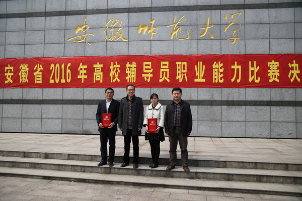 学校领导高度重视本次辅导员技能大赛,许继荣书记、闵永新校长从初赛到决赛全程关注,汪时珍副校长全程参与指导;学生处和相关学院积极谋划,组成专业团队全程跟踪指导服务。在皖南赛区复赛中,来自皖南片安徽师范大学、安徽工业大学等多所高校的39名选手进行了激烈的角逐,永利官网叶超群、操龙德两位老师最终脱颖而出,顺利晋级决赛。在决赛中,来自三个赛区的36名选手进行了激烈的比拼,叶超群和操龙德老师越战越勇,分获安徽省高校辅导员职业能力大赛一、二等奖。