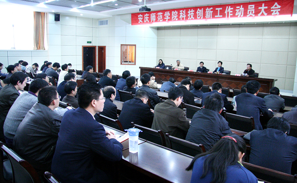 在全校深入贯彻落实科学发展观的学习实践活动之际,学校围绕“着力内涵建设,强化办学特色,推进科学发展”的主题,4月8日下午召开了全校科技创新工作动员大会,这次大会的主题是:打造皖江城市创新特色,服务地方经济建设。党委副书记、副院长朱士群,副院长王海燕出席会议并讲话。人事处、教务处、学科建设与研究生教育处负责人,理工科院系、经济与管理学院党政负责人及副高职称以上人员,文科院系分管科研负责人,重点实验室、基地、研究所负责人,科研秘书,科技处全体人员等100多人参加了会议。会议由科技处副处长吴琼主持。