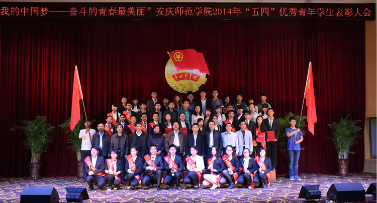 4月30日下午,龙山校区东报告厅团歌嘹亮,青春激扬,“我的中国梦——奋斗的青春最美丽”安庆师范学院2014年“五四”优秀青年学生表彰大会在这里隆重举行。何小祥、朱士群、殷红、闵永新、张群、汪时珍、刘友忠、陈光明、方锡球等党政领导出席大会,并分别为学校“十佳青年”颁奖。