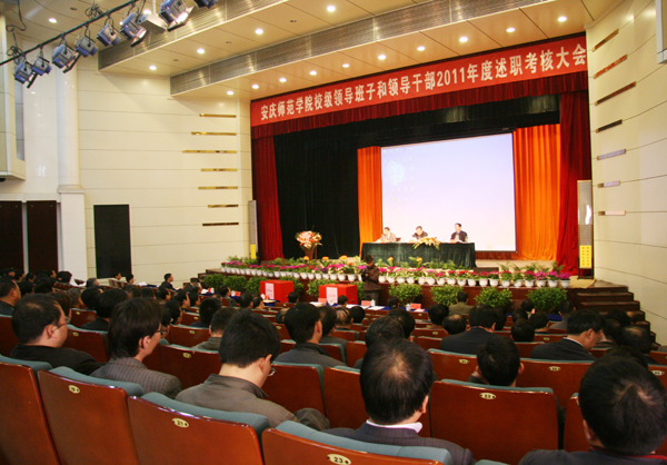4月5日,永利官网隆重召开校级领导班子和领导干部2011年度述职考核大会。考核组组长、省委教育工委委员、安徽省总督学李明阳,考核组成员、省委教育工委组干处处长王忠,省委教育工委师资处副处长卢鹏,省委组织部企事业干部处主任科员周叔利等同志一行来校进行校级领导班子、领导干部2011年度工作考核工作。