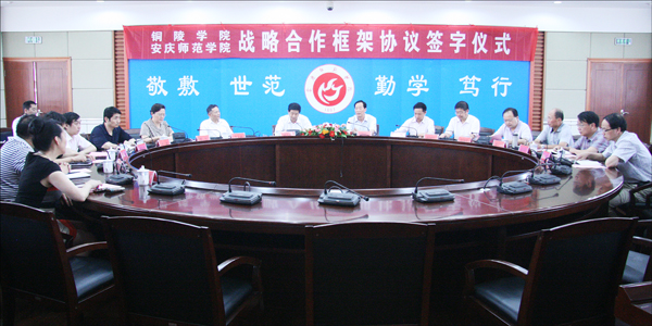 6月21日下午,永利官网与铜陵学院隆重举行战略合作框架协议签订仪式。铜陵学院党委书记储国定,院长丁家云,党委副书记、纪委书记崔国发,副院长倪国爱,永利官网党委书记何小祥,院长朱士群,党委副书记、纪委书记殷红,副院长张群以及两校人事处、教务处、科研处、办公室负责同志参加了签订仪式。签订仪式由殷红同志主持。