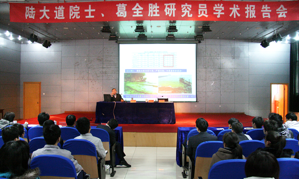陆大道院士指出,回顾在长期实践中形成的关于人与自然相互关系的基本认识和基本观点,对于认识科学发展观是非常重要的。人类长期生产和生活的历史告诉我们,自然环境是人类赖以生存的基本条件。自然为人类提供的条件是不均衡的,这种不均衡主要表现为时空的不均衡;与此同时,人类对自然的依赖也是发展变化的,随着社会经济的发展和科学技术水平的提高,人类对于自然的依赖在规模和深度上越来越大。陆院士指出,改革开放以来,我国在取得经济建设巨大成就的同时,自然环境也遭到了严重的破坏。目前,我国水、气、土壤等环境因子污染严重,已经形成了不同程度的环境危机,威胁到了国民的生存健康,成为制约社会经济可持续发展的瓶颈。他通过国内外大量的实例和图片展示,阐述了我国环境问题产生的根源及解决的方法与手段。陆大道院士最后指出,我国是个人口众多的发展中国家,相对于许多国家来说,发展和环境的双重压力更为突出。环境、资源、人类生存和经济增长之间存在着相互促进和制约的关系。一旦中华民族赖以生存的自然基础和生态环境遭到全面破坏,必然会严重阻碍经济发展,影响社会发展。破解资源、环境方面的这些难题,现如今我们必须落实好科学发展观,实现我国的可持续发展。