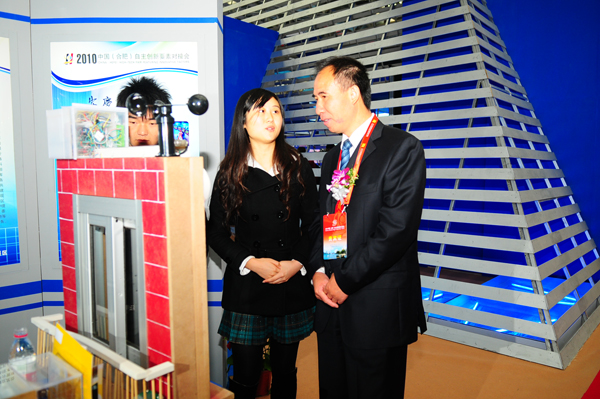 对接会上,永利官网主要展示了物理与电气工程学院学生自主研发的“智能窗户”和“变频调速系统”两件科技成果。教育部科技司谢焕忠司长、安徽省教育厅程艺厅长先后来到永利官网展区,饶有兴致地观看展品和学校情况介绍。当听到科技成果 “智能窗户”的工作原理及其用途的介绍后,谢司长高兴地点头肯定,连连表示“思路不错”,他指出我们的“智能窗户”有很大的市场潜力,建议我们投入生产。程厅长对我们的科技创新大加赞扬,并热切询问了开发过程。