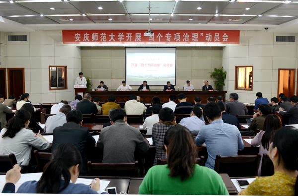 4月19日,学校召开“四个专项治理”动员会,动员部署全校“四个专项治理”工作。学校党政领导许继荣、闵永新、张群、汪时珍、刘友忠,党委委员、文学院党总支书记、院长方锡球出席会议,全体纪委委员,各职能部门、各直属单位主要负责人,各学院党政主要负责人,组织员、党风党纪监督员、特邀监察员,“四个专项治理”领导小组各工作组联络员和各单位联络员参加会议。校党委副书记、校长闵永新主持会议。