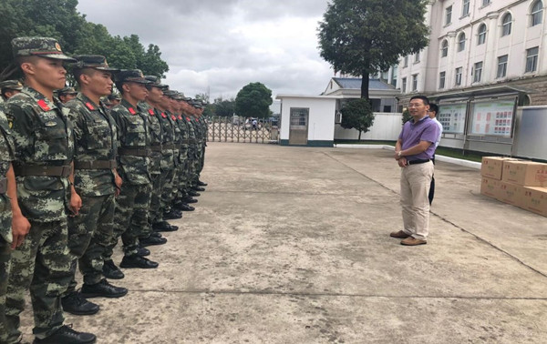 汪时珍代表学校党政班子对开展军训工作的官兵致以节日的问候,对军训教官们连日来开展的军事训练工作给予了高度评价和肯定。他指出,教官们在军训中充分展示了人民军队的光荣传统和优良作风,体现了艰苦奋斗、勇于拼搏和团队协作的优良品质,为全体新生上好了开学第一课。