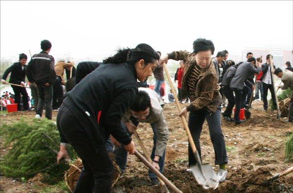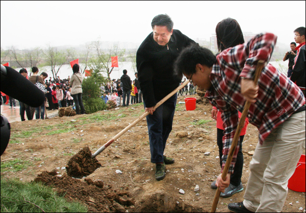 校党委书记赵晓和,党委副书记、院长朱士群,副院长时新中、王海燕,党委副书记、纪委书记殷红,副院长闵永新、张群等校领导和560名学生代表一起,共同为这批树木挖宕、培土。