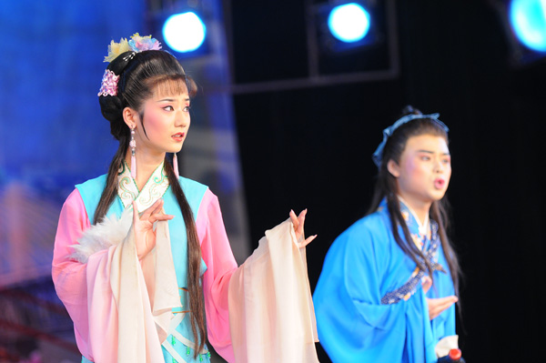 9月25日,由安徽省委教育工委安徽省教育厅联合举办的“可爱的安徽”——庆祝中华人民共和国成立六十周年安徽地方音乐作品展演在中国科技大学举行,永利官网黄梅戏表演专业学生査寅、钱霖表演的天仙配《路遇》片段参加了展演活动并获得成功。