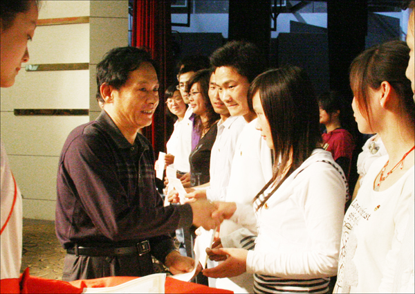 “从他们身上我看到了什么是朝气,我也希望能像学长学姐们那样树立服务基层的意识,从容面对生活中的种种挑战,我觉得他们是新时期中国青年的榜样。”来自09级文学院对外汉语专业的谷京杨感慨地说。