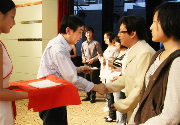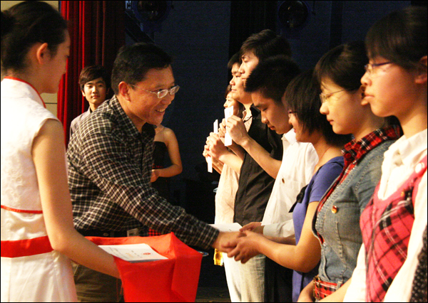 党委委员、办公室主任刘友忠为获奖学生颁奖