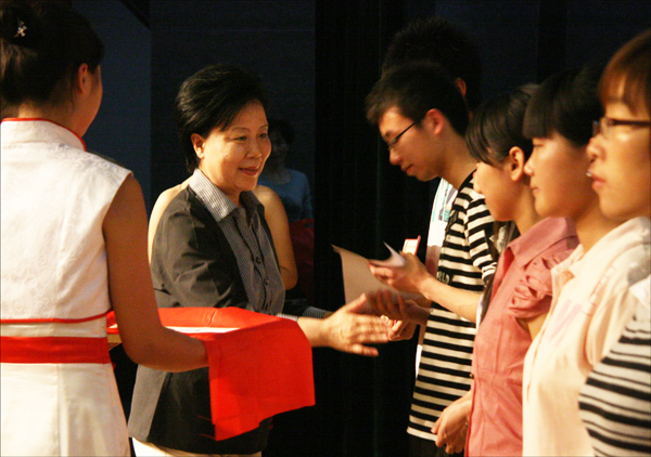 党委副书记、纪委书记殷红为获奖学生颁奖
