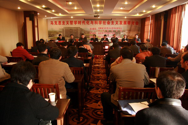校党委副书记、院长朱士群在会上致辞。他代表学校党政班子向各位领导和专家的到来表示欢迎,并向与会专家介绍了永利官网悠久的办学历史和发展现状。他指出学校多年来一直重视哲学社会科学尤其马克思主义哲学教育和研究工作,作为安徽省中国特色社会主义研究基地,我们在中国特色社会主义理论体系研究中形成了自己的特色,哲学社会科学是人们认识世界和改造世界的工具,是推动社会发展和进步的重要力量,在建设中国特色社会主义中发挥着重要的不可替代的作用,党的十七大做出了要繁荣哲学社会科学的重大部署。安徽省马克思主义哲学应用学会自成立以来坚持正确政治方向,以繁荣哲学社会科学为宗旨,深入贯彻十七大和十七届一中二中三中、四中五中全会精神,按照马克思主义时代化、科学化、大众化的要求,发扬理论联系实际的优良学风,把基础研究和应用研究紧密结合起来,推动理论成果转化,促进经济发展,提高公众知识素养方面发挥着重要的作用。本次会议将围绕“马克思主义哲学的时代化和科学社会主义发展”这一主题进行深入研讨,有利于掌握马克思主义研究动态,必将繁荣我省哲学社会科学事业,为实现我省社会经济又好又快发展做出自己的贡献。