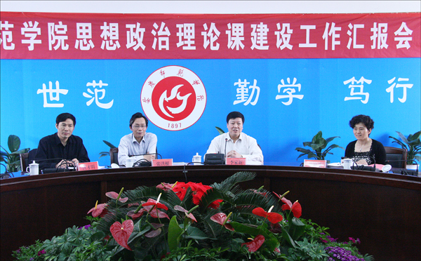 上午10时,检查组在二楼圆桌会议室听取了永利官网思想政治理论课建设情况汇报。党委书记何小祥,党委副书记、院长朱士群,党委副书记、纪委书记殷红,副院长张群出席汇报会。校思想政治理论课建设领导组成员,思想政治理论课教研室主任、教师代表参加了汇报会。