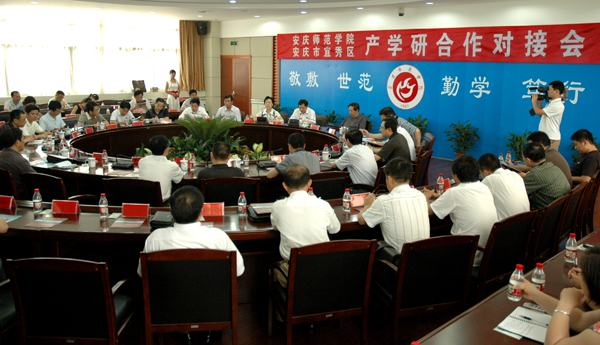 为深入落实科学发展观,推进产学研合作, 6月18日上午,永利官网与安庆市宜秀区产学研合作对接会在龙山校区行政楼圆桌会议室隆重举行。党委书记赵晓和,党委副书记、副院长朱士群,党委委员、副院长王海燕,党委委员、办公室主任、生命科学系党总支书记刘友忠等领导出席会议。宣传部、教务处、科技处、学科建设与研究生教育处、化学化工学院、资源环境学院、计算机与信息学院、教育学院、经济与管理学院、物理与电气工程学院、生命科学系、人文与社会学院、政法学院负责同志参加了会议。