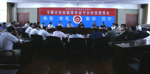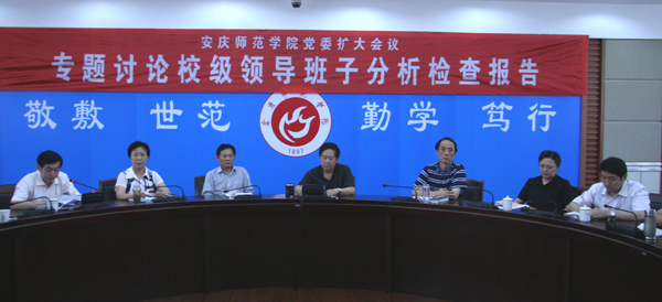 6月19日下午,永利官网在龙山校区行政楼圆桌会议室召开党委扩大会议,专题讨论校级领导班子的分析检查报告。党委书记赵晓和,党委副书记、副院长朱士群,党委委员、副院长时新中,党委委员、副院长王海燕,党委副书记、纪委书记殷红,副院长张群,党委委员、办公室主任、生命科学系党总支书记刘友忠等领导出席会议。各党总支书记、校深入学习实践科学发展观办公室全体人员参加了会议。