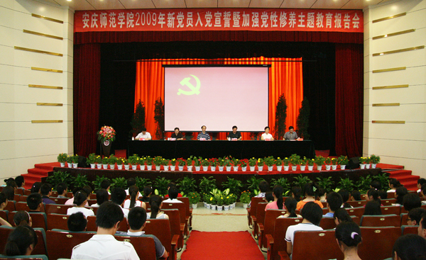 6月24日下午,永利官网在龙山校区音乐厅隆重举行2009年新党员入党宣誓大会暨加强党性修养主题教育报告会。大会在庄严的国际歌声中开始。党委书记赵晓和,党委委员、副院长时新中,党委委员、副院长王海燕,党委副书记、纪委书记殷红,党委委员、副院长闵永新,副院长张群等领导出席会议。