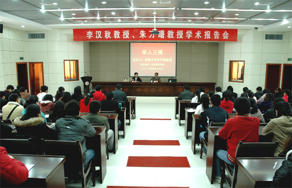 4月15日下午,安徽大学文学院院长、教育部人文社会科学重点研究基地安徽大学徽学研究中心主任朱万曙教授来校,为永利官网近200名青年教师以及在校研究生代表做了一场以“学人三境”为主题的学术报告会。校党委副书记、院长朱士群,副院长王海燕,出席了报告会。报告会由副院长王海燕主持。