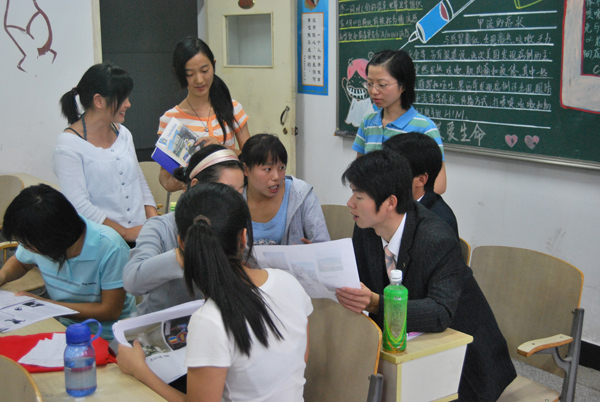 9月27下午,外国语学院学生试讲初、高中英语教材活动迎来了一群特殊的指导教师——39名在永利官网接受培训的望江县中学英语骨干教师。活动中,39名骨干教师分成8个小组,对08级学生试讲初、高中教材进行观摩、指导并与学生开展了交流讨论。骨干教师们在认真听完学生模拟授课后,结合中学英语教学实际和新课改的要求,对学生的教学设计和教学过程进行了点评。在与学生交流讨论过程中,指导教师耐心解答了学生提出的如何确定教学重难点、如何激发学生学习兴趣等具体问题,并将日常教学积累的宝贵教学经验传授给学生。活动结束后,学生纷纷表示受益匪浅。