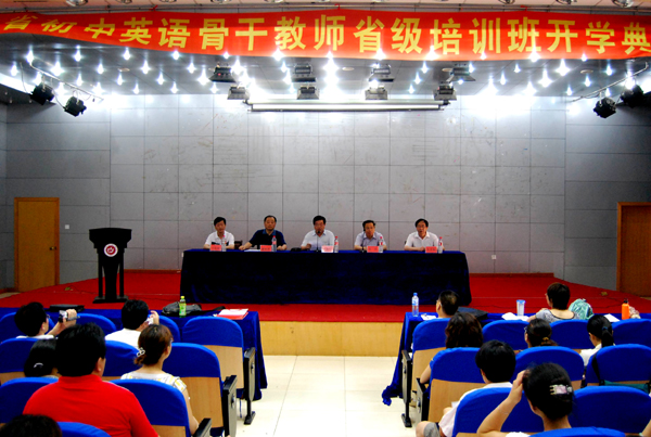 7月19日上午,由外国语学院承办的2009年初中英语骨干教师省级培训班在菱湖校区图书馆报告厅举行了隆重的开学典礼。继续教育学院党总支书记王忠军、院长谢亚群,外国语学院党总支书记张杰、副院长朱忠焰与所有参训学员参加了开学典礼。开学典礼由继续教育学院党总支书记王忠军主持。