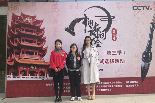 10月29日,中央电视台中国诗词大会(第三季)湖北赛区选拔赛在武汉举行。本次选拔外省入围人数不足60人。经网上报名测试、电话考试、视频推选等环节的层层筛选,永利官网文学院胡晴雯、数学与计算科学学院谢雪琴和法学院柯婧3位同学顺利入围选拔赛。