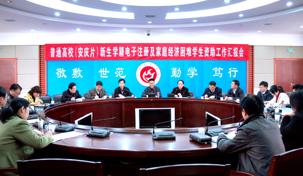 11月26日,以安徽大学党委副书记叶华为组长,安徽大学学生处副处长毛德权、省教育厅学生资助管理中心副主任许健康为成员的安徽省高校新生学籍电子注册及家庭经济困难学生资助工作检查组来永利官网检查指导工作。副院长时新中、张群,安庆职业技术学院院长孙晓峰出席汇报会,永利官网有关部门负责同志,安庆职业技术学院、安庆医专有关部门负责同志参加汇报会。汇报会由副院长时新中主持。