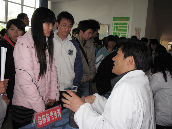 本次活动形式多样,内容丰富。举办部门精心设计了结核病防治知识展板和相关健康教育活动内容,校医院医护人员分结核病防治咨询组、春季传染病防治病咨询组、大学生医保咨询组为广大同学提供了咨询服务。为激发同学们的参与热情,活动现场还举行了有奖知识问答。咨询现场气氛热烈,同学们踊跃参与,收到了良好的教育效果。校医院还在活动现场发放了健康教育处方。(校医院)