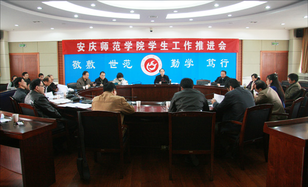 会上,团委副书记刘燕汇报了《安庆师范学院大学生修身教育工程实施方案》、保卫处副处级调研员张国成汇报了《安庆师范学院2010年安全教育宣传月活动方案》、教育学院党总支书记黄警钟汇报了《2010—2011学年度心理健康教育和心理咨询工作实施方案》、学生处副处长金文斌汇报了《安庆师范学院学生“四成”预警机制检查方案》。各学院和相关单位负责人就提交讨论的四项方案进行了充分、热烈的讨论。上述方案也将在近期修订完善后,在全校范围内正式实施。(文/学生处 图/陈东)