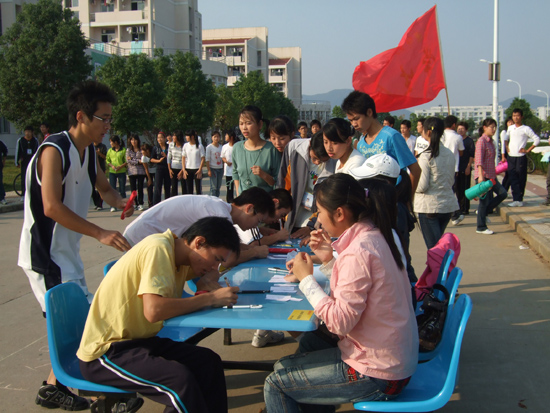在校史知识越野赛开赛前进行了简短的开幕式,下午3点整越野赛正式开始。本次越野赛以永利官网百余年来的办学历史为考核内容,融智力和运动为一体,在永利官网的各类比赛中以其新颖的形式和别具一格的特色吸引了永利官网龙山校区12个院系120位同学的积极参与。比赛在教学楼广场开始了第一棒,途径龙山校区安苑食堂、后勤食堂、图书馆、11幢学生宿舍楼和教学楼广场五个答题接力站点。在比赛过程中,各院系队员在接到本院系接力棒后奋力奔向下一站点进行答题接力。形式新颖,趣味横生的校史知识环校越野赛吸引了众多同学的观看,并为接力赛跑的选手加油助威,整场比赛在紧张而又愉快的气氛中进行。