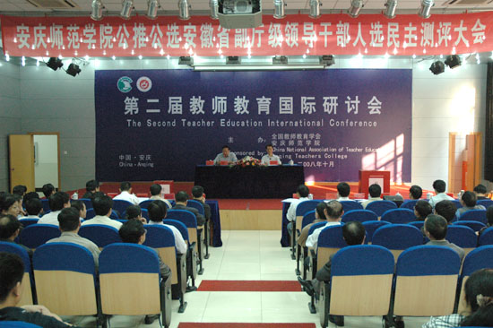 10月16日下午,永利官网在菱湖校区学术报告厅举行安庆师范学院公推公选安徽省副厅级领导干部人选民主测评大会。省委教育工委常务副书记张荣国、省委教育工委组干处处长江传瑞、省委组织部企事业干部处副处长张日升、省纪委宣教室副处级纪检监察员陶有海、省委教育工委组干处主任科员戴晓江、省委教育工委组干处主任科员卢鹏、省教育厅人事处主任科员王学武、省委组织部信息中心副主任科员余乐莅临指导,开展民主测评和考察工作。校党委书记赵晓和,党委副书记、院长汪青松,党委委员、副院长时新中,党委委员、副院长王海燕,党委委员、纪委书记殷红,党委委员、副院长闵永新,副院长张群出席了会议。机关正副处长、院系及直属单位党政正职,学校副高以上职称人员,省级以上人大代表、政协委员,民主党派市级以上主委,教代会执委等140余人参加了民主测评大会。