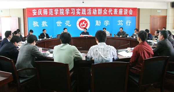 4月10日下午,永利官网在龙山校区行政楼二楼会议室召开学习实践活动群众代表座谈会。党委副书记、副院长、学校学习实践活动领导小组第一副组长朱士群出席了座谈会。由学校各民主党派、无党派人士、人大代表、政协委员、教代会执委、工会委员、教师、学生和离退休人员代表组成的学习实践活动群众代表以及永利官网学习实践活动办公室全体成员共40余人参加了座谈会。校学习实践活动领导小组办公室常务副主任、组织部部长陈光明主持座谈会。