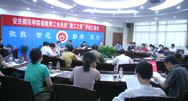 6月29日下午,永利官网创建省教育工会先进教工之家评估汇报会在龙山校区行政楼二楼会议室隆重召开。省教育工会主席、评估组组长王昆奇,省教育工会副主席、评估组副组长王兰,专家组成员、省教育工会常委、中国科技大学工会俞寿明主席,省教育工会常委、合肥工业大学工会张兆玲主席,省教育工会常委、安徽大学工会郁建民主席,省教育工会常委、省高校工会、教代会工作研究会副理会长韩斌,省教育工会常委、安徽理工大学工会洪江如主席,永利官网党委书记赵晓和,党委副书记、纪委书记殷红等校领导出席了汇报会,校创建先进教工之家领导小组成员、教代会执委会委员、工会委员会委员、基层工会主席参加了会议。汇报会由校党委副书记、纪委书记殷红主持。