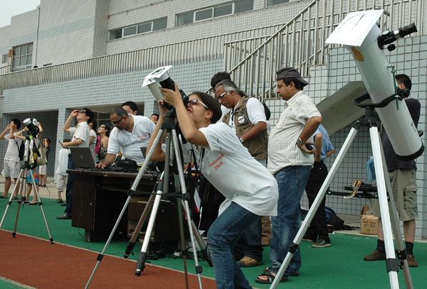 当天上午,在省外事办和安庆市外事办的安排下,数十名印度留学生也在龙山校区观测了这一天文奇观。