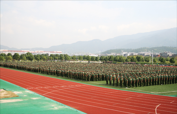 9月24日上午,在龙山校区塑胶运动场,5800余名2010级新生身着迷彩服,在这里进行他们军训的最后一课——总结表彰。党委书记何小祥代表学校向武警安庆支队副支队长胡庆南赠送了锦旗。时新中副院长作军训总结讲话,他希望同学们“自觉地担负起时代所赋予的当代青年大学生的神圣使命,秉承‘敬敷世范,勤学笃行’的校训精神,快乐成长,健康成人,励志成才,走向成功,把自己造就成祖国和人民需要的栋梁之才”。党委副书记、纪委书记殷红宣读表彰决定,19个军训优秀连队、182个内务优秀寝室以及182名优秀学员受到了表彰。王海燕副院长主持总结表彰大会。