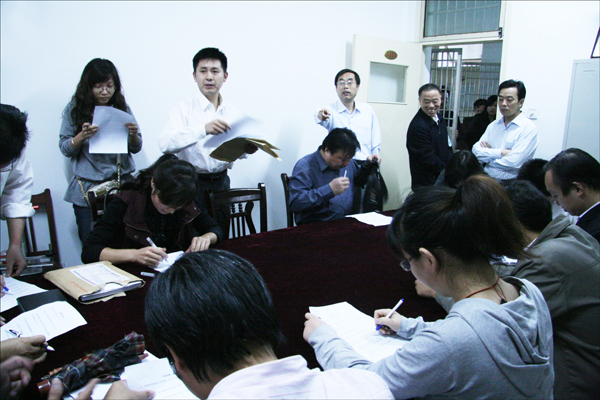 汇报会后,检查组查阅了永利官网文明创建方面的相关材料。摆放在会场北边四张长桌上的5大类37盒创建文明单位材料引起了检查组的浓厚兴趣,陈啸副院长、李忠部长、张英明主任一盒一盒地进行了认真的查看,同时还就相关问题进行了询问。专家们认为,“你们的材料很多,很充实,也很真”。当看到永利官网文明创建组织机构和职责分工的材料时,专家们认为,“从材料里可以看出文明创建工作常态化,创建过程清晰,从2003年到现在,每年的材料都有,有连续性,这是长期积累的结果”。