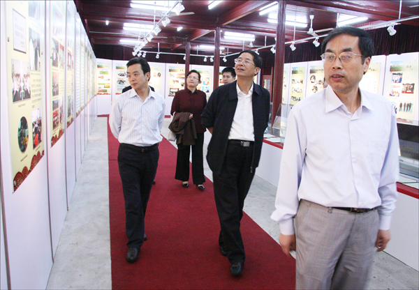 在菱湖校区校史校情展览馆,当看见学校的敬敷书院大讲堂正梁以及学校110余年办学历程后,陈啸副院长感慨地说,“安庆师范学院的历史底蕴确实很深厚”。