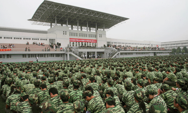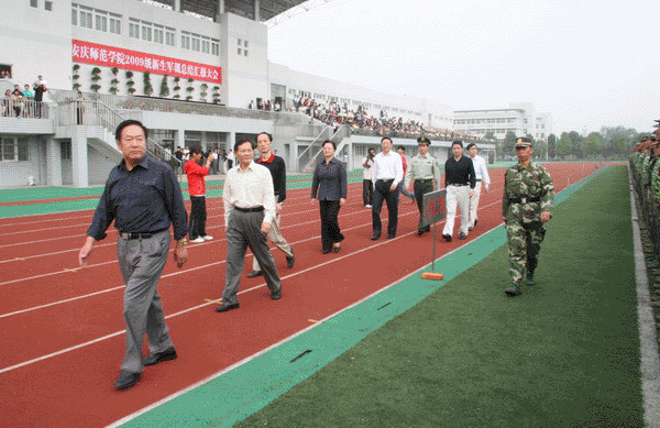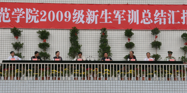 9月22日上午,永利官网在龙山校区塑胶运动场隆重举行2009级学生军训汇报总结大会。校党委书记赵晓和,党委副书记、副院长朱士群,党委委员、副院长时新中,党委副书记、纪委书记殷红,党委委员、副院长闵永新,副院长张群等校领导和党委委员、党办、院办、外事办公室主任、生命科学系党总支书记刘友忠,武警安庆支队副支队长胡庆南等领导出席大会。各院系分管领导、有关职能部门负责同志参加了大会。全校十五个院系2009级学生近六千人进行了军训汇报演出。大会由时新中副院长主持。