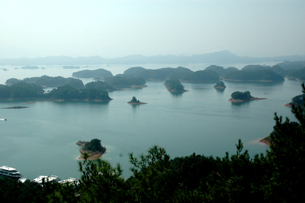千岛湖是国家一级水体,位于浙江省淳安县境内,是1959年建造我国第一座自行设计、自制设备的大型水力发电站——新安江水力发电站而拦坝蓄水形成的人工湖。千岛湖湖区面积573平方公里,因湖内拥有星罗棋布的1078个岛屿而得名。千岛湖植被丰富,森林繁茂,森林覆盖率达95%,有“绿色千岛湖”之称,并在1986年11月被林业部批复为国家森林公园。景区还保存比较完整、面积较大的阔叶混交林区及千亩田、磨心尖的植物分布群落等,都是组织植物景观、植被考察和开展专项旅游的特色资源。