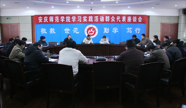 1月11日下午,永利官网在龙山校区行政楼二楼会议室召开了学习实践活动群众代表座谈会。校学习实践活动领导小组办公室常务副主任、组织部部长陈光明,校学习实践活动领导小组办公室秘书组副组长、党办(院办、外事办)副主任陈秀,校学习实践活动领导小组办公室组织组副组长、新校区建设办公室副主任孙根华出席了会议,由学校各民主党派、无党派人士、人大代表、政协委员、教代会执委、工会委员、教师、学生和离退休人员代表组成的学习实践活动群众代表以及永利官网学习实践活动办公室相关成员共20余人参加了座谈会。校学习实践活动领导小组办公室常务副主任、组织部部长陈光明主持了座谈会。