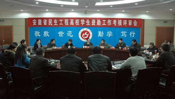 1月15日下午,安徽省民生工程高校学生资助工作考核组来永利官网检查指导学生资助工作。考核组由安徽医科大学常务副校长江敏任组长,省学生资助管理中心副主任许健康、安徽医科大学学生处副处长马军成、安徽经济管理学院学生处副处长李方遒共同参加。永利官网在龙山校区行政楼二楼会议室举行了欢迎仪式。党委副书记、院长朱士群,副院长张群出席仪式,校学生资助管理工作委员会委员、龙山校区各院系分管学生工作负责人、专管老师和学生代表共50余人参加了仪式。欢迎仪式由张群副院长主持。