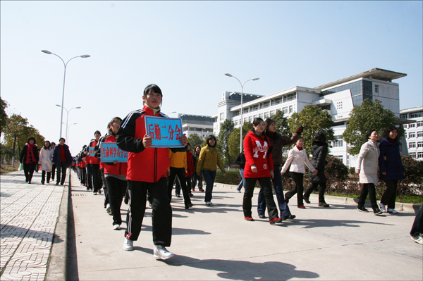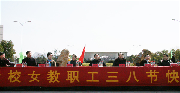 3月10日下午,龙山校区敬敷广场彩旗飘飘,横幅眩目,永利官网纪念“三八”国际劳动妇女节100周年“环校健身走”等活动在这里隆重举行。校党政领导赵晓和、朱士群、时新中、王海燕、殷红、闵永新、张群等和广大女教职工一道参加了庆祝活动。