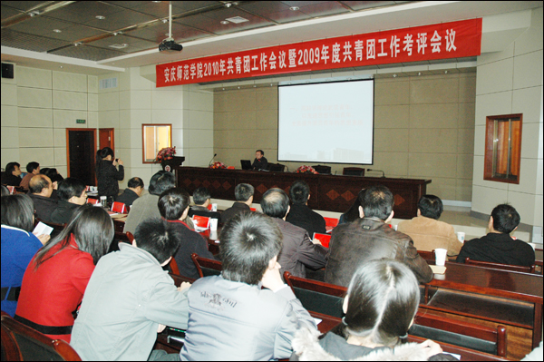 会议结束后,在行政楼一楼会议室进行了2009年院系共青团工作考评会议。党委组织部部长陈光明、党委宣传部部长朱守良、教务处处长程曦、学生处副处长金文斌、团委副书记刘燕等担任评审组成员。各院系党总支领导担任互评组成员。来自15个院系的团总支以PPT形式汇报了各自院系的2009年度团总支工作。经过综合评审,文学院、外国语学院、计算机与信息学院等三个学院团总支被评为“红旗团总支”;资源环境学院、政法学院、化学化工学院、物理与电气工程学院、教育学院等五个学院团总支被评为先进团总支。相关表彰活动将在“五四”期间举行。