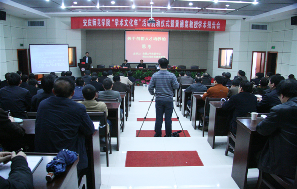 4月6日下午,永利官网学术文化年启动仪式结束后,中共安徽省委委员、安徽大学党委书记、博士生导师黄德宽教授应邀作首场学术报告。学校党政领导赵晓和、朱士群、时新中、王海燕、殷红、闵永新、张群等出席报告会。安徽大学办公室主任汪向东,学校各职能部门主要负责人,皖江历史文化研究中心、国家大学生文化素质教育基地主要负责人,人事处、教务处、科技处、学科处全体工作人员,各学院党政负责人以及教师、学生代表120余人听取了报告。报告会由党委书记赵晓和同志主持,党委副书记、院长朱士群作精彩点评。