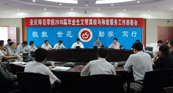 6月9日下午,永利官网在龙山校区行政楼二楼圆桌会议室召开2010届毕业生文明离校与和谐服务工作部署会。校党委委员、副院长时新中,副院长张群出席会议。院办、组织部、宣传部、教务处、国资处、财务处、保卫处、招生就业处、学生处、团委、图书馆、后勤管理处、后勤集团、安苑公司等单位负责人,各学院党政主要负责人、就业秘书、毕业班辅导员共60余人参加了会议。会议由副院长张群主持。