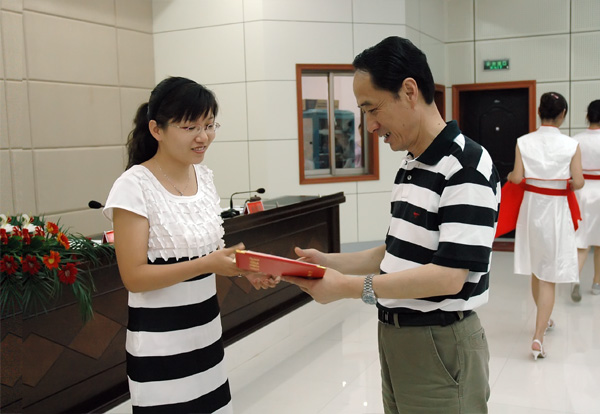 仪式上,时新中副院长为获得一等奖的人文与社会学院辅导员董思老师颁发了证书和奖金;党委副书记、纪委书记殷红为获得二、三等奖的辅导员老师颁奖;组织部部长陈光明宣读了表彰决定,并为获得优秀奖的辅导员老师颁奖。